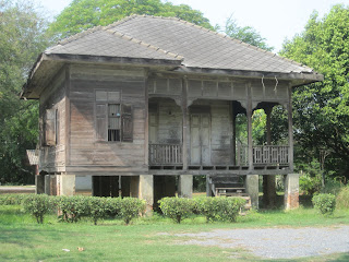 I walked to Reun Prakumsakkee and stood there for awhile looking at it. The house stood in a lot with grass deep enough to hide cobras, pythons, or the ubiquitous water monitors that crept up from the water. The wooden house was weather-beaten and faded, the shutters over the windows ajar, the windows like empty eye sockets. Raised on pilings several feet above the ground, a splintered wooden pallet leaned against what was left of the stairs, obviously placed there to prevent anyone from entering the house.